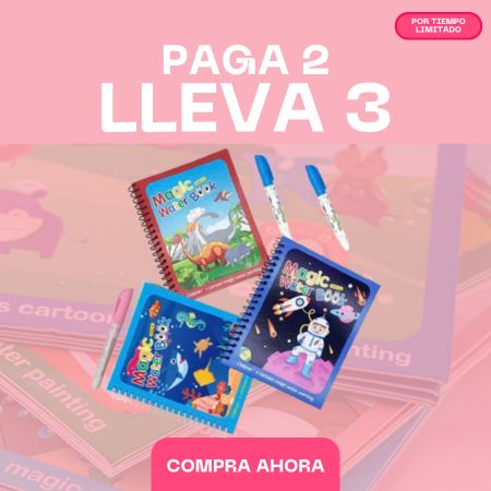 ¡No te pierdas esta increíble oportunidad! Compra 2 AquaMagic Art Book® y llévate 3. Ofrece a tus hijos diversión educativa, sin desorden y lejos de las pantallas. ¡Fomenta su creatividad y habilidades motoras mientras ahorras! 🌟🖌️📚